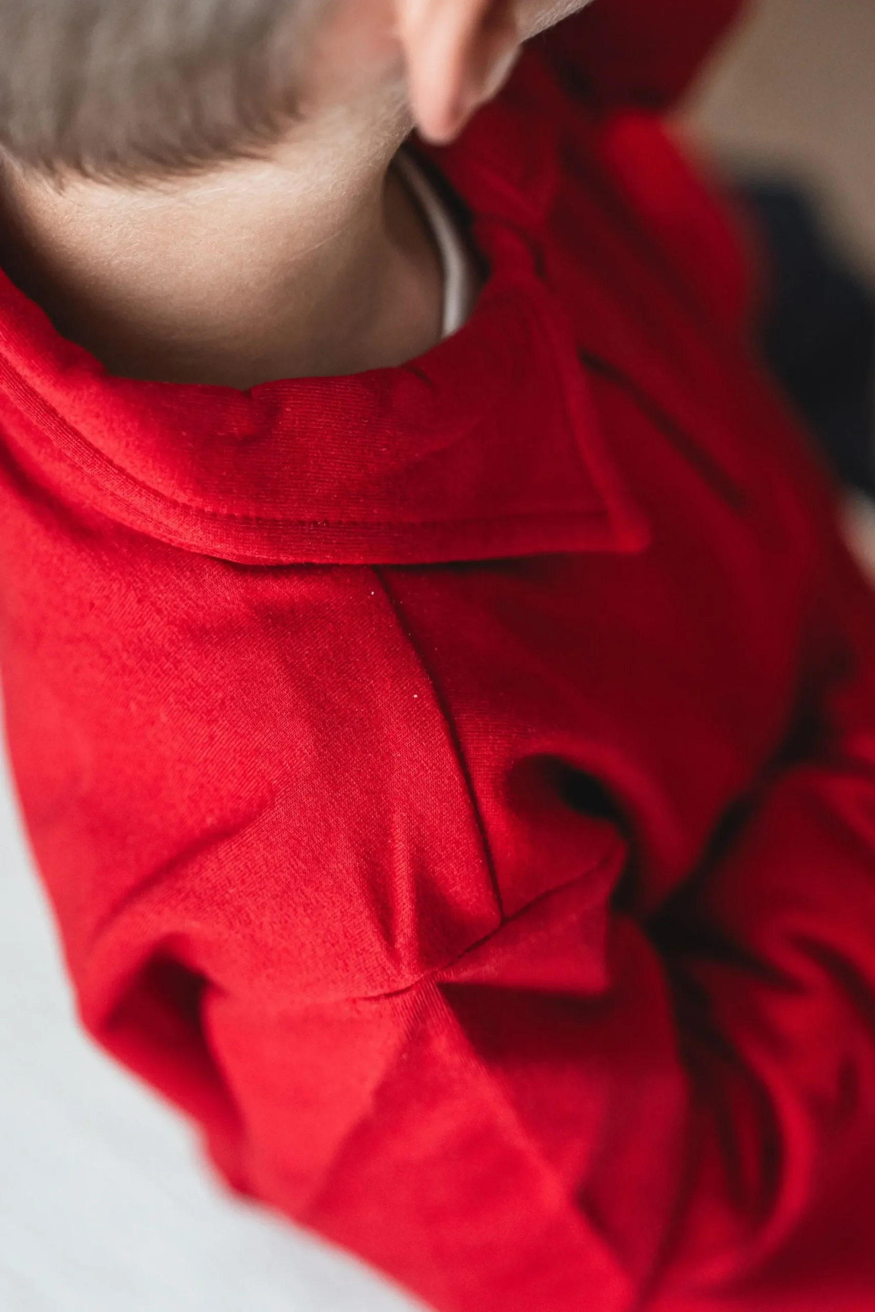 Långärmad tröja med krage och knappar i halsen. Tröjan är tillverkad i ekologisk bomull.