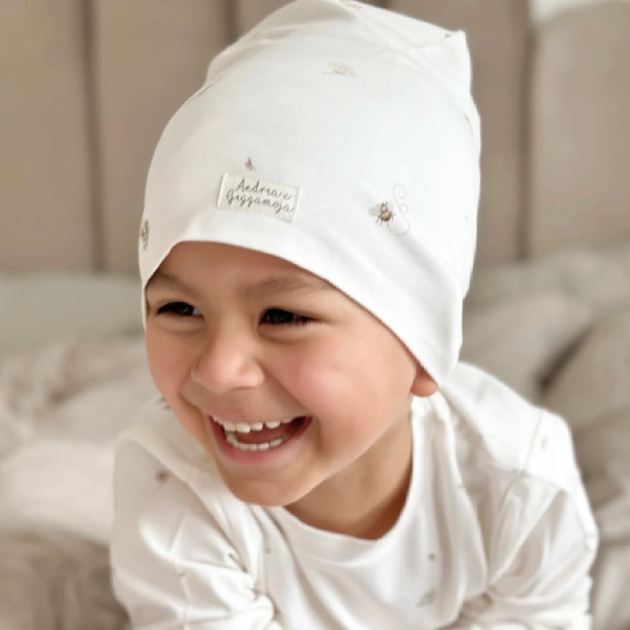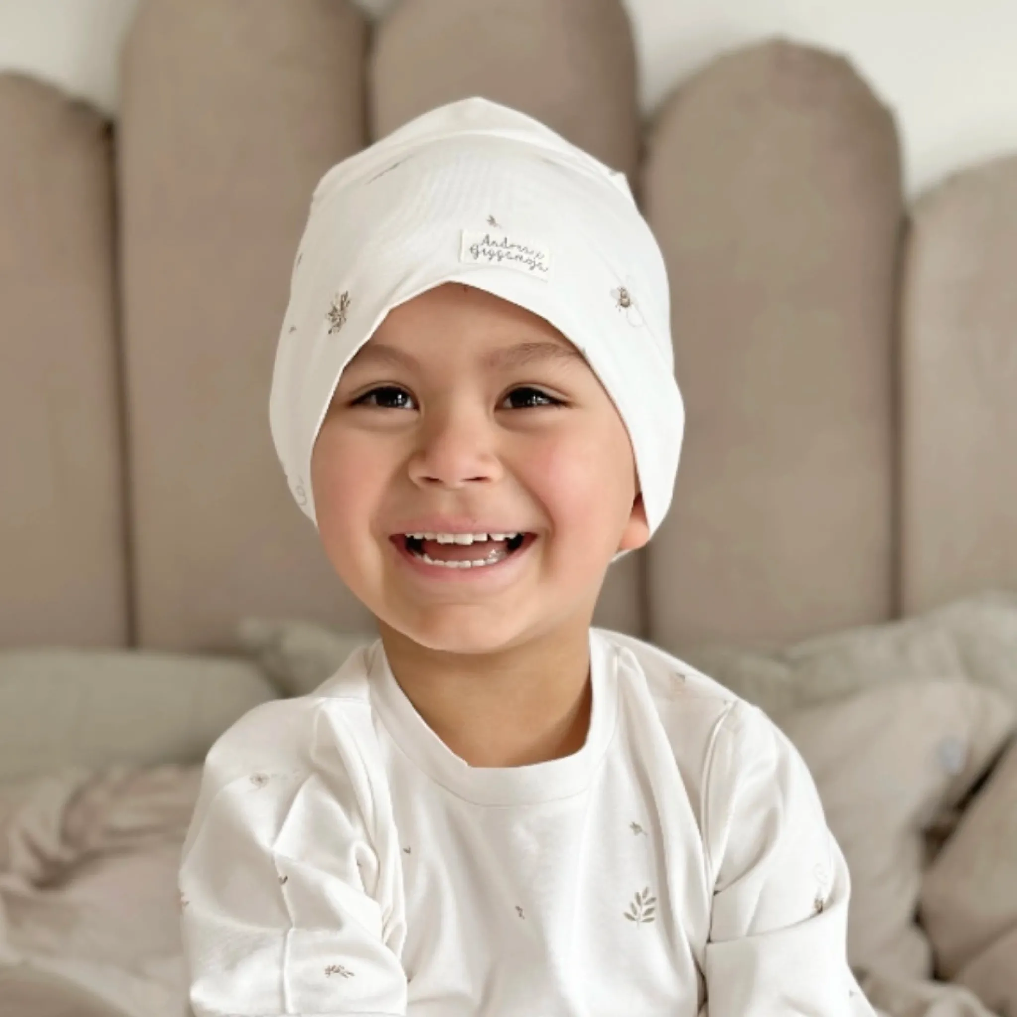 En mössa i mjuk och skön bambu/bomull. Passar vår, sommar och höst. Bambu är ett miljövänligt materialval, det odlas helt organiskt utan bekämpningsmedel och är 100 % biologiskt nedbrytbart. Bambu är lent och bekvämt mot huden och tillåter huden att andas. Dess termiska egenskaper, liksom ull och silke, gör att materialet känns varmt när det är kallt och svalt när det är varmt- ett perfekt material för barnkläder.