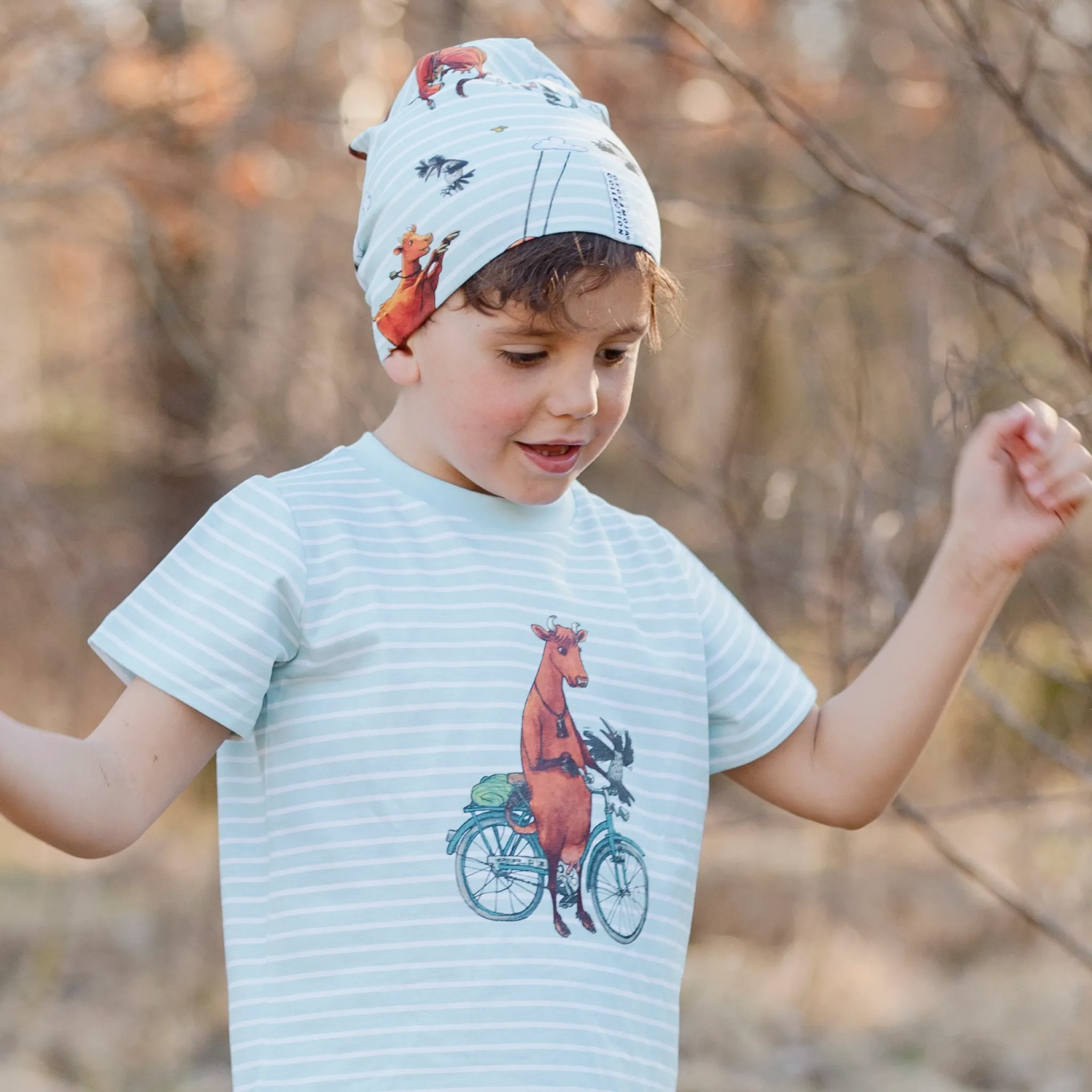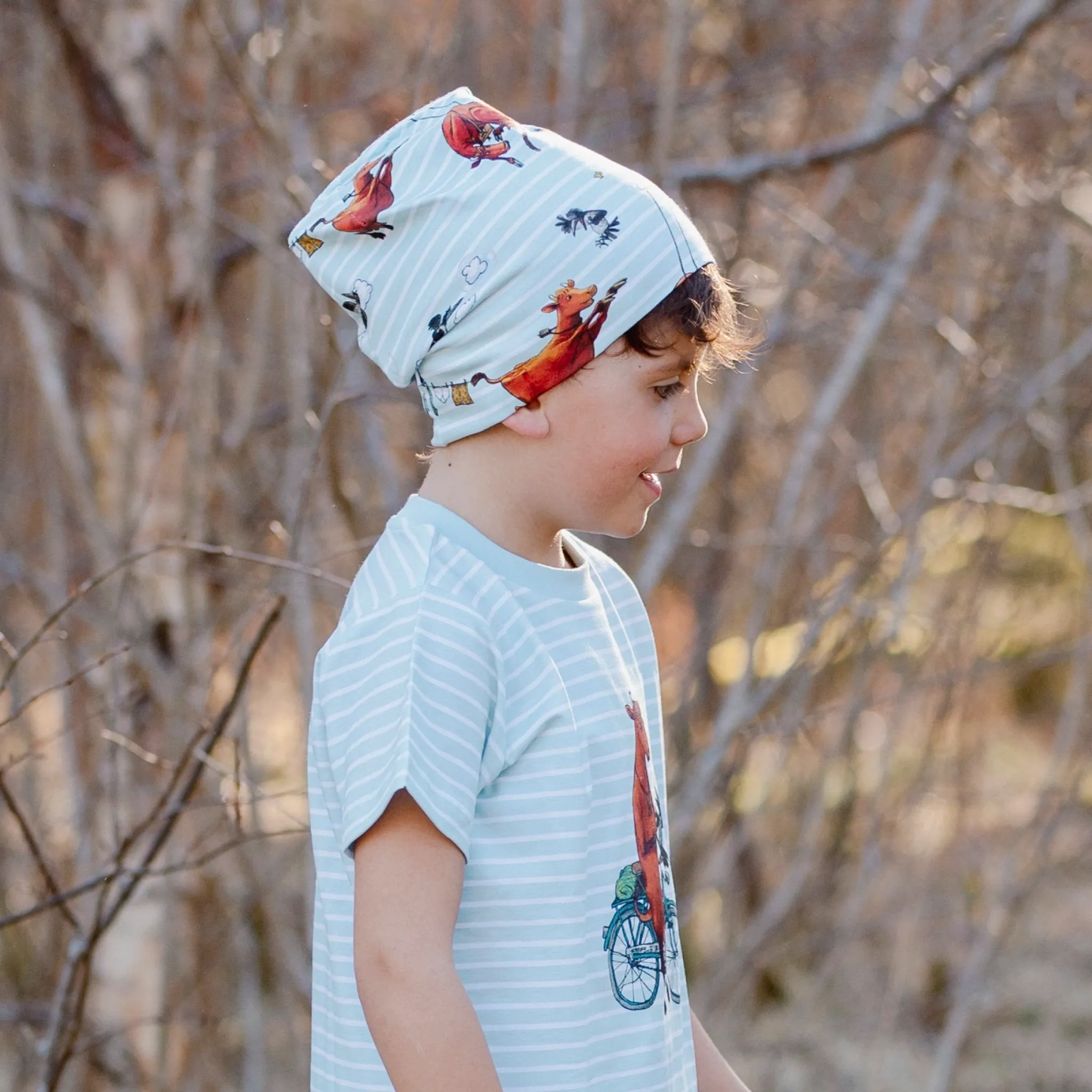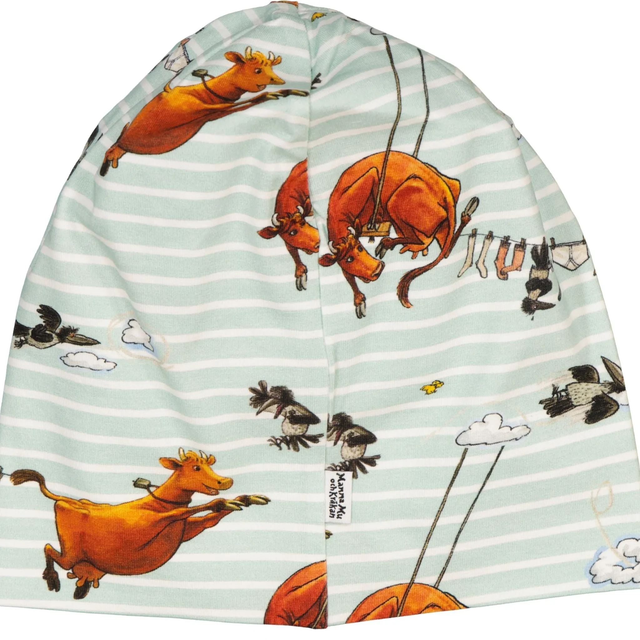 Mössa med Mamma Mu print. Mössan är i Ekologisk bomull och har Geggamojas härliga passform som passar alla, liten som stor.