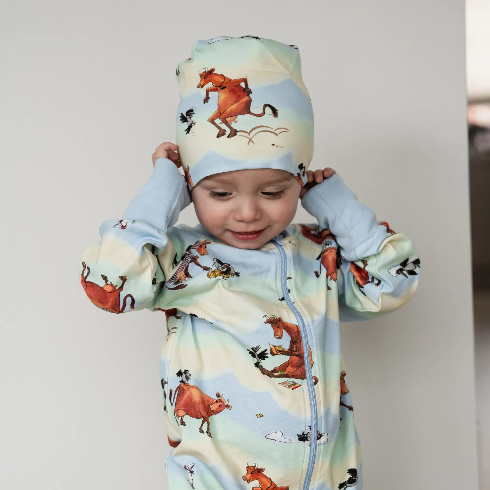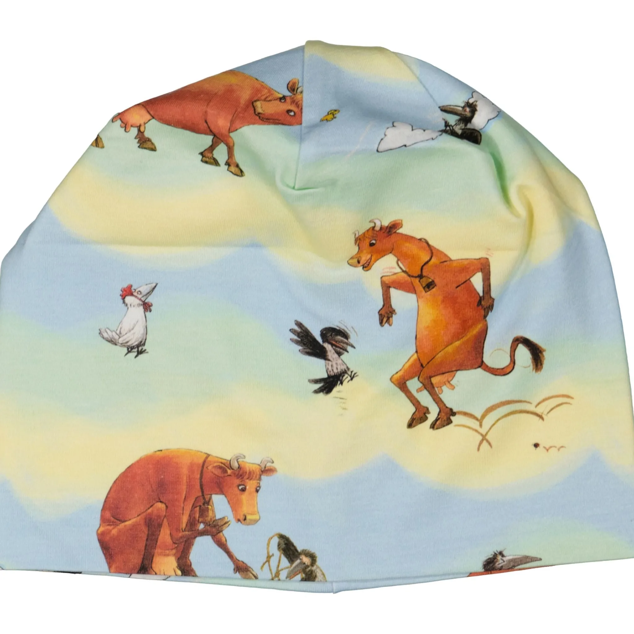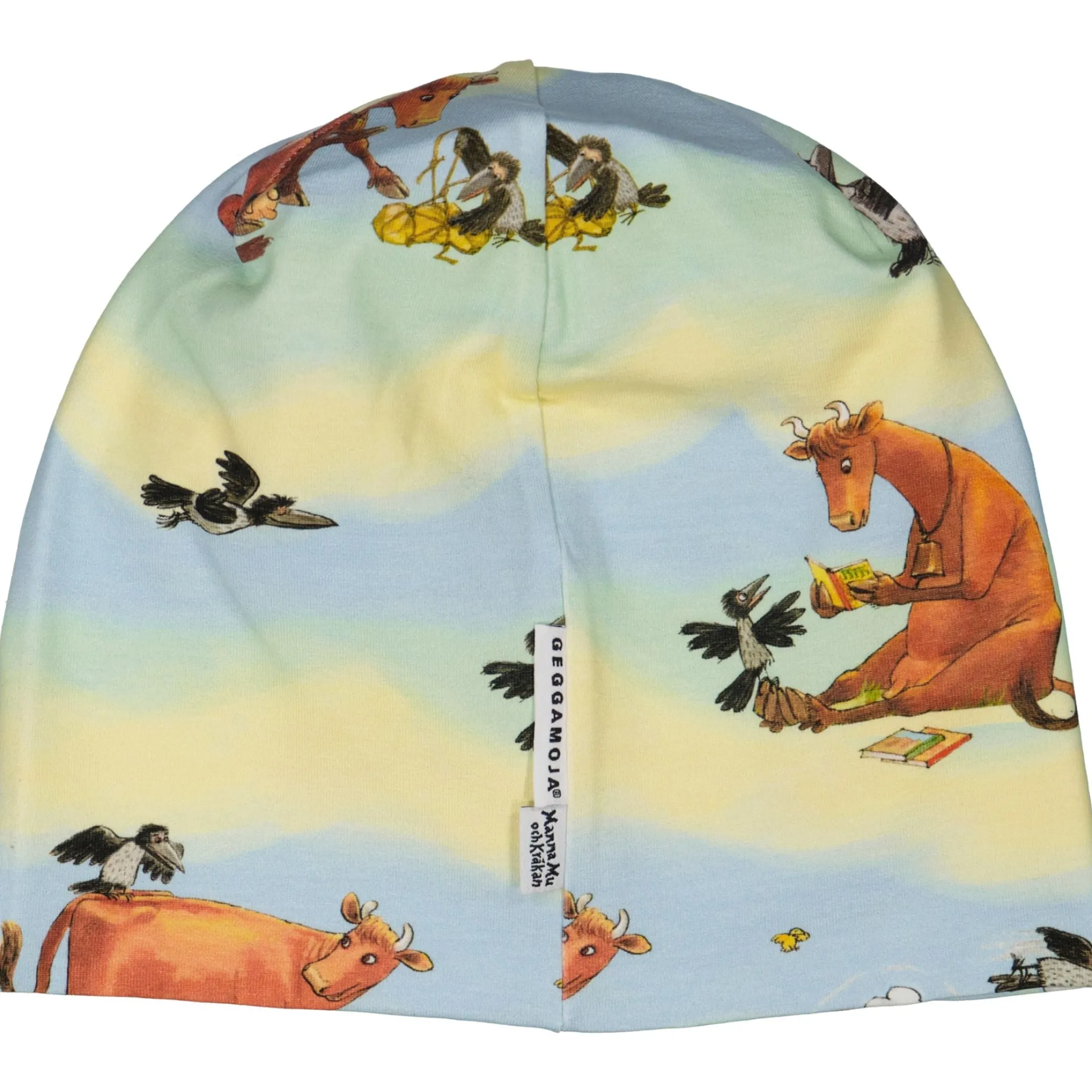 Mössa med Mamma Mu print. Mössan är i Ekologisk bomull och har Geggamojas härliga passform som passar alla, liten som stor.