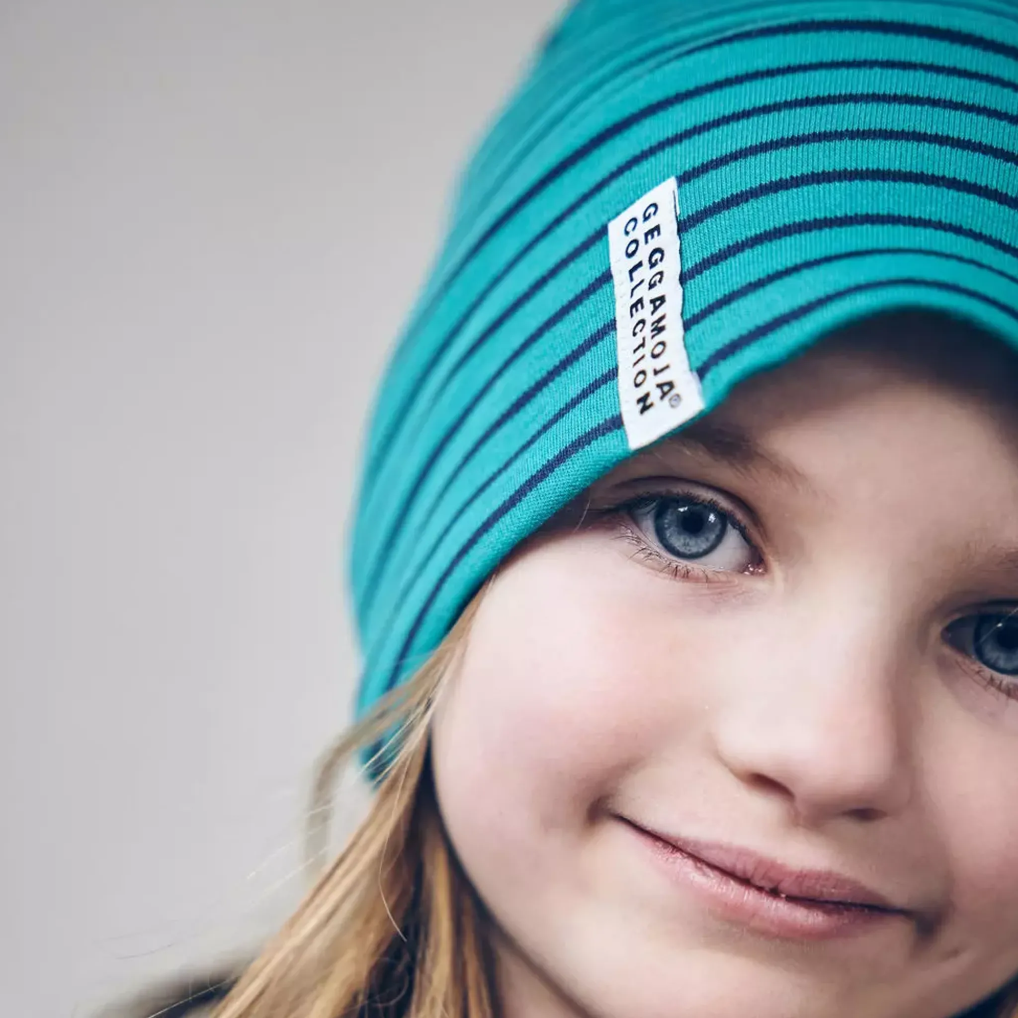 Bästa mössan! Geggamojas Topline i petrol och marinblårandig Den perfekt året-runt-mössan.