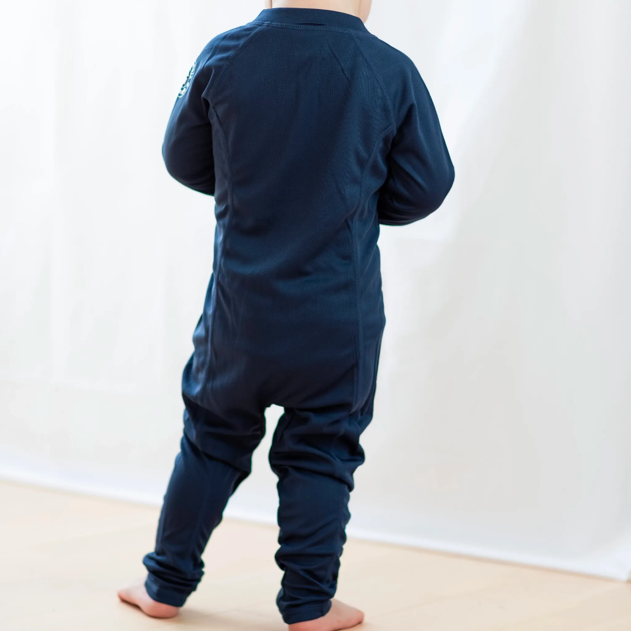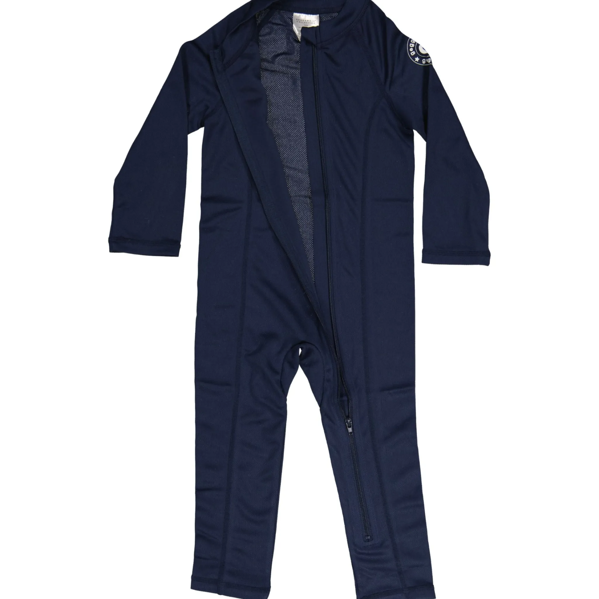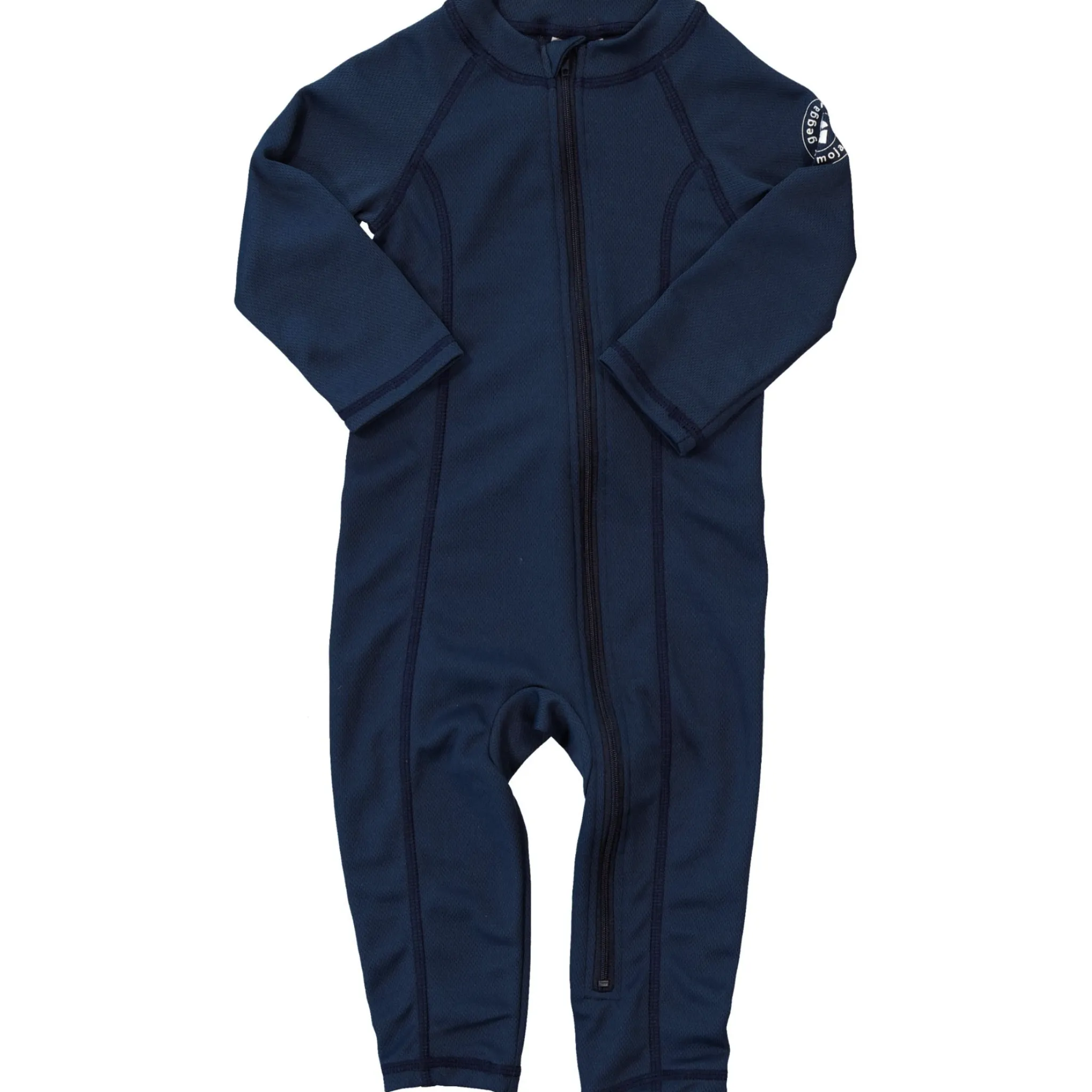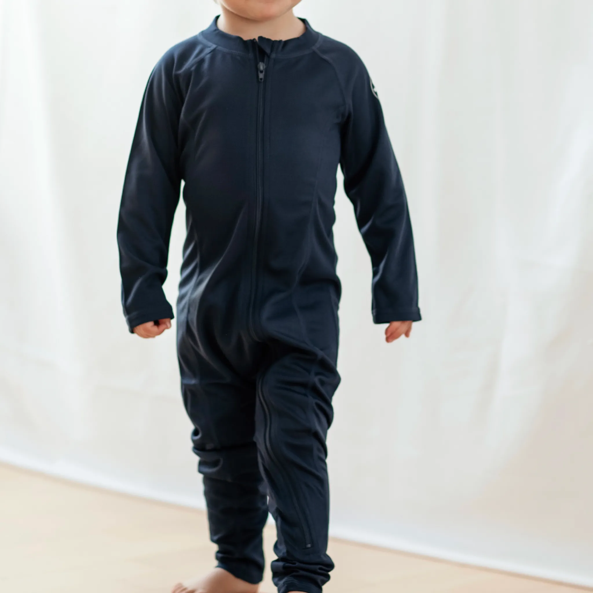 Marinblå UV- dräkt för barn som ska vistas i solen. UV- dräkten är en storfavorit hos barnfamiljer. Med en UV dräkt skyddar du ditt barn från solen starka stålar både vid poolen eller på stranden. UV-dräkten är tillverkad i ett snabbtorkande material, med UV-50+ som blockerar 98% av solens farliga UVA- och UVB-strålar. Dräkten har en dragkedja framtill för enkel på och avklädnad.
