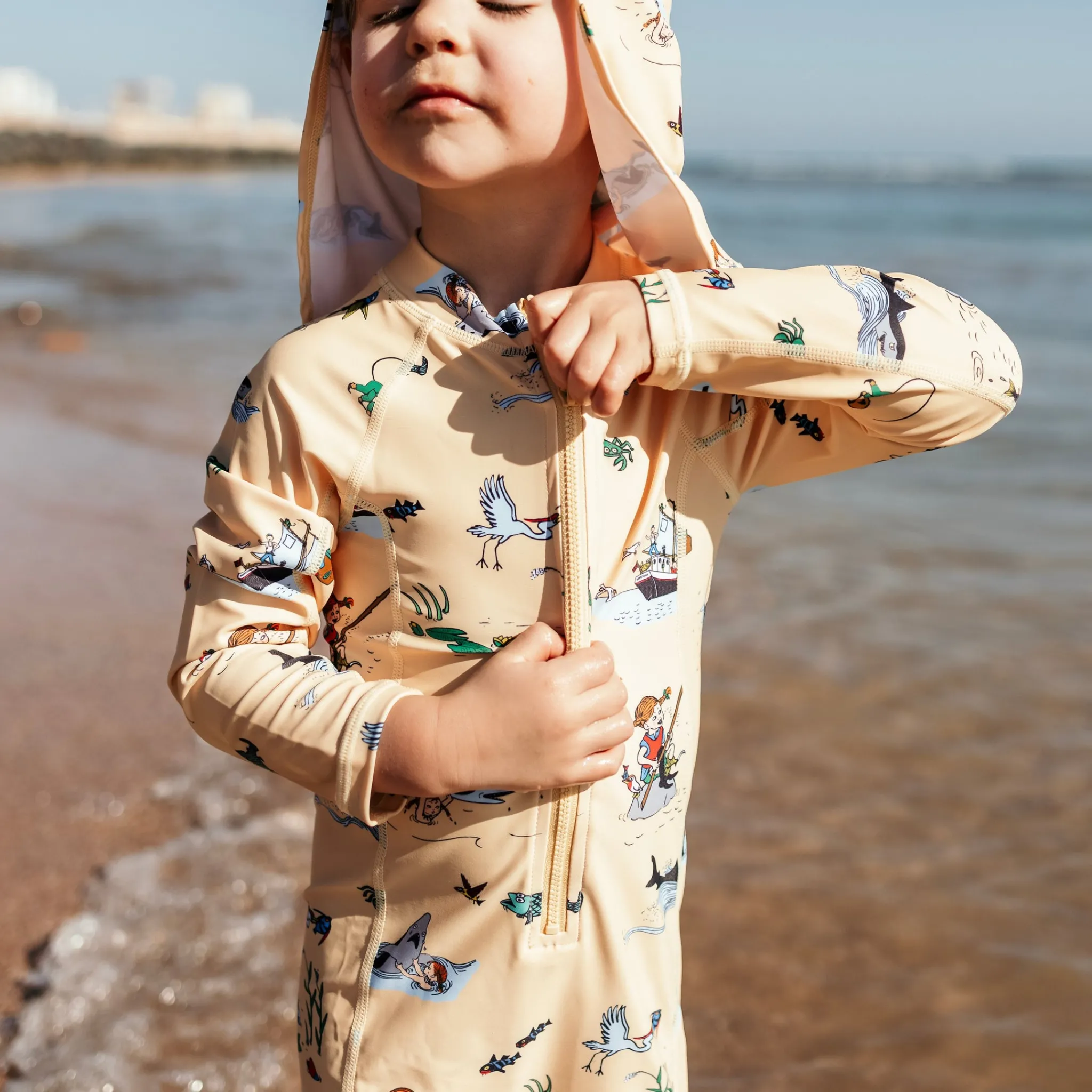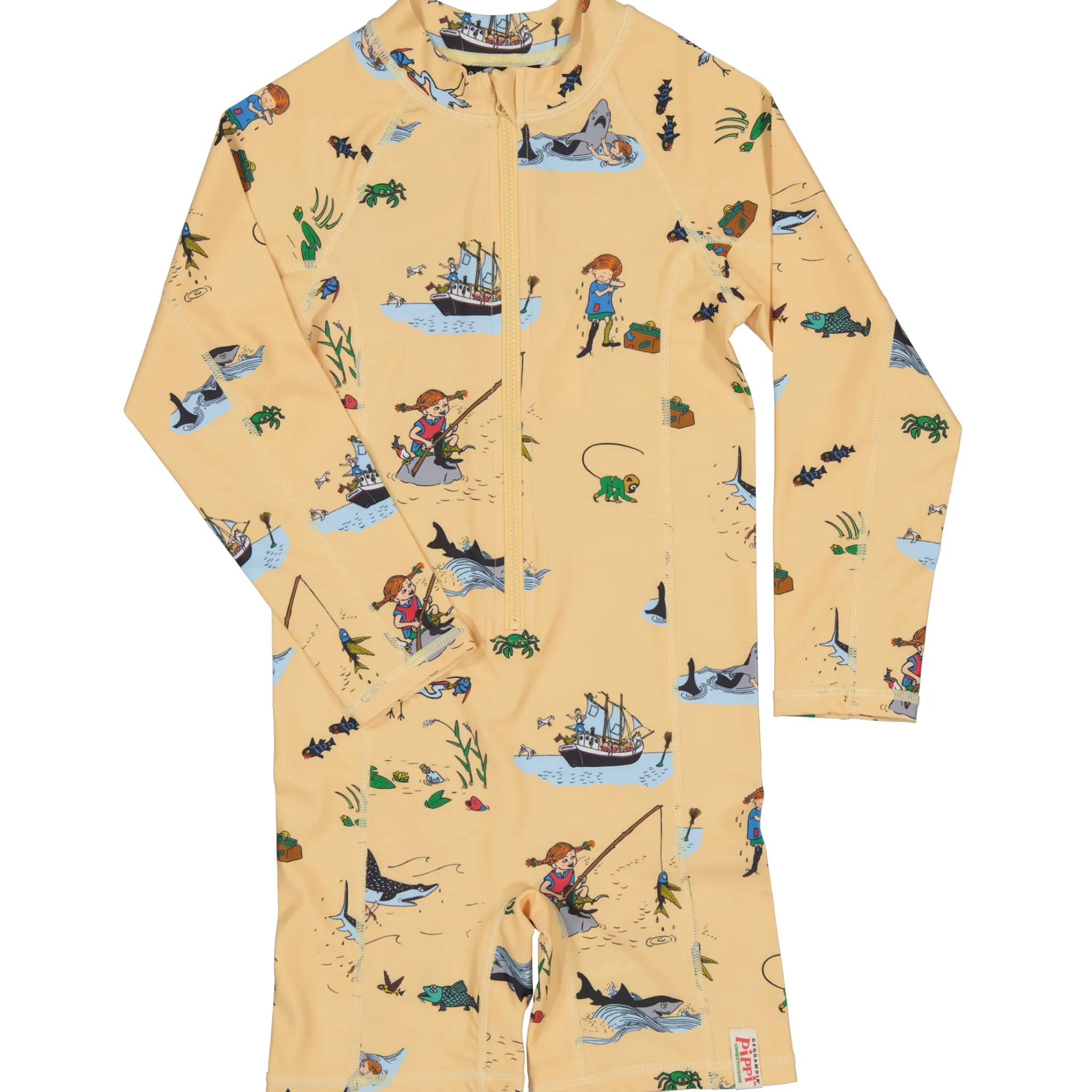 UV-dräkt med Pippi motiv och korta ben och långa armar som skyddar ditt barn mot solen strålar. Den är praktisk och användbar med dragkedja framtill. En storfavorit hos barnfamiljer på grund av sin enkelhet och solskydd. UV-dräkten är tillverkad i ett snabbtorkande material, med UV-50+ som blockerar 98% av solens farliga UVA- och UVB-strålar. Dräkten har en dragkedja framtill för enkel på och avklädnad.