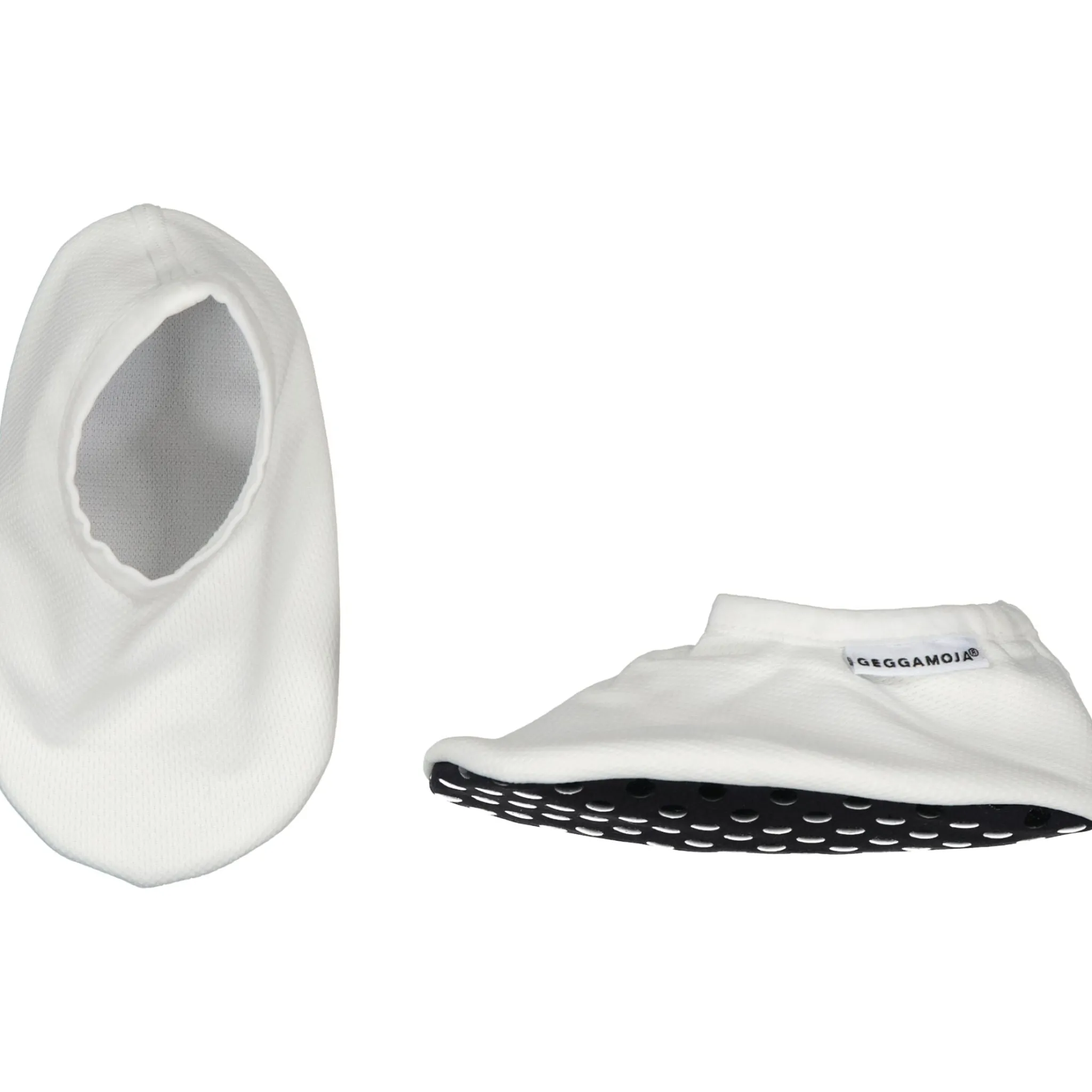 Skydda små fötter i sol och vatten! Vår UV-socka är tillverkad i snabbtorkande material med inbyggt UV-skydd (standard EN 13758-1) som skyddar känslig hud mot solens strålar. Den mjuka och flexibla anti-slip-sulan ger extra grepp på hala underlag – perfekt för lek vid poolen, på stranden eller i trädgården.