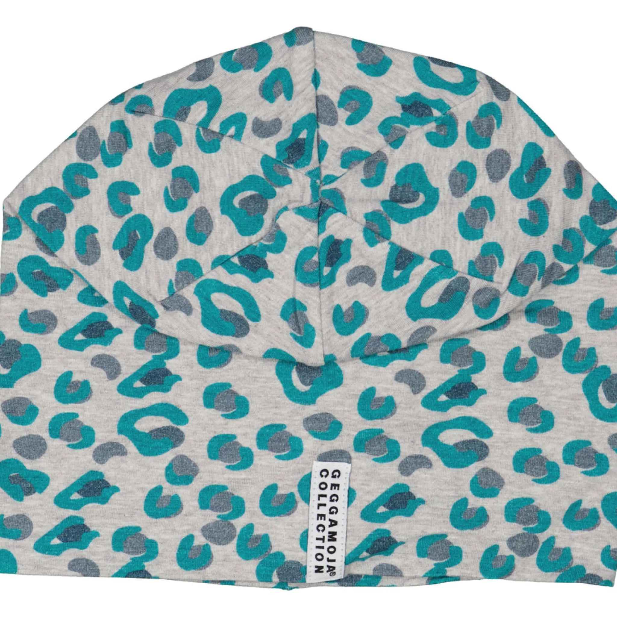 Varm och go mössa i bambu med blå/grönt leopardprint och ett fleecefoder i marinblått. Värmer skönt vid lägre temperaturer.