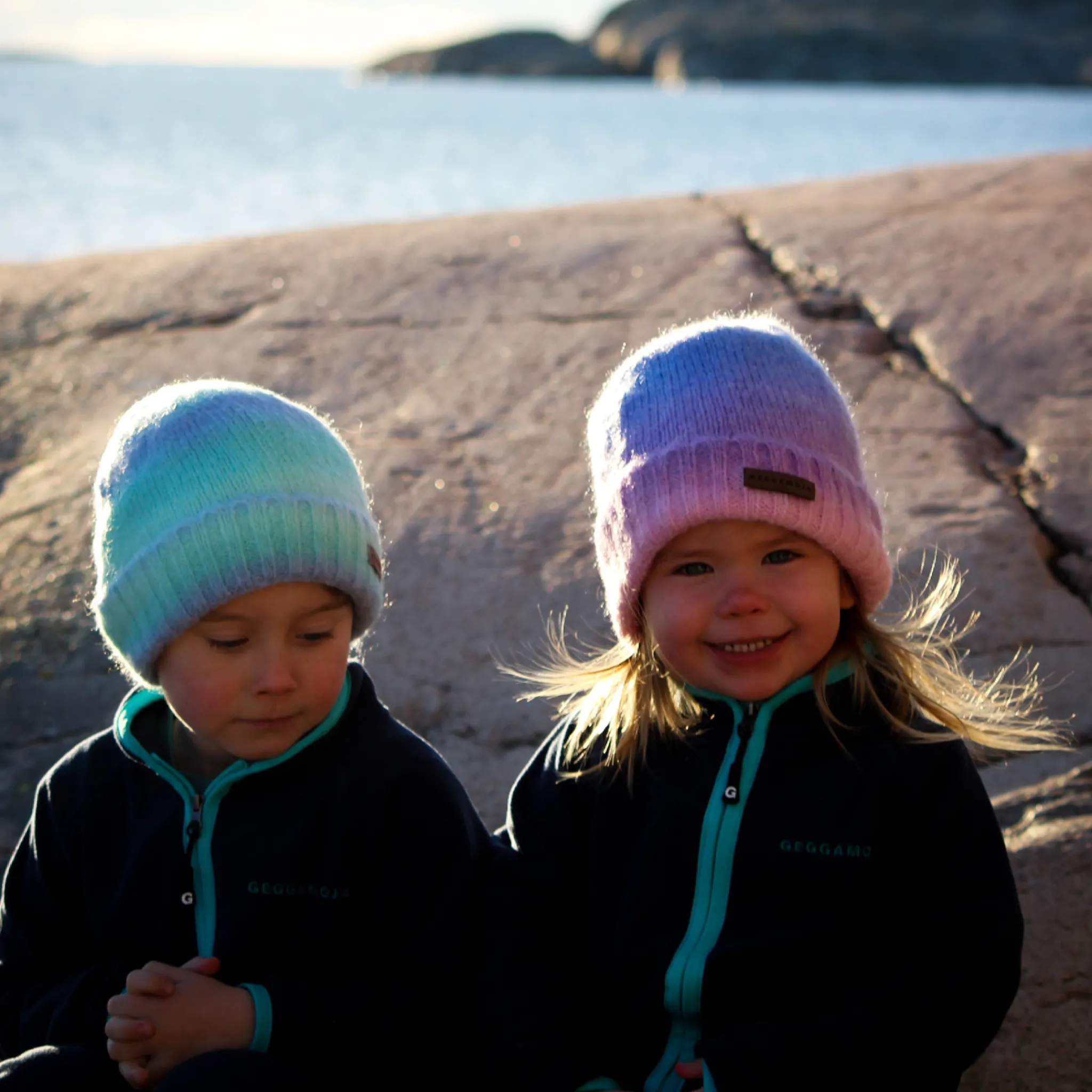 Stickad mössa tillverkad i ull/akryl i härliga färger. Mössan har ett mjukt fleecefoder. En perfekt vintermössa till aktiva barn.