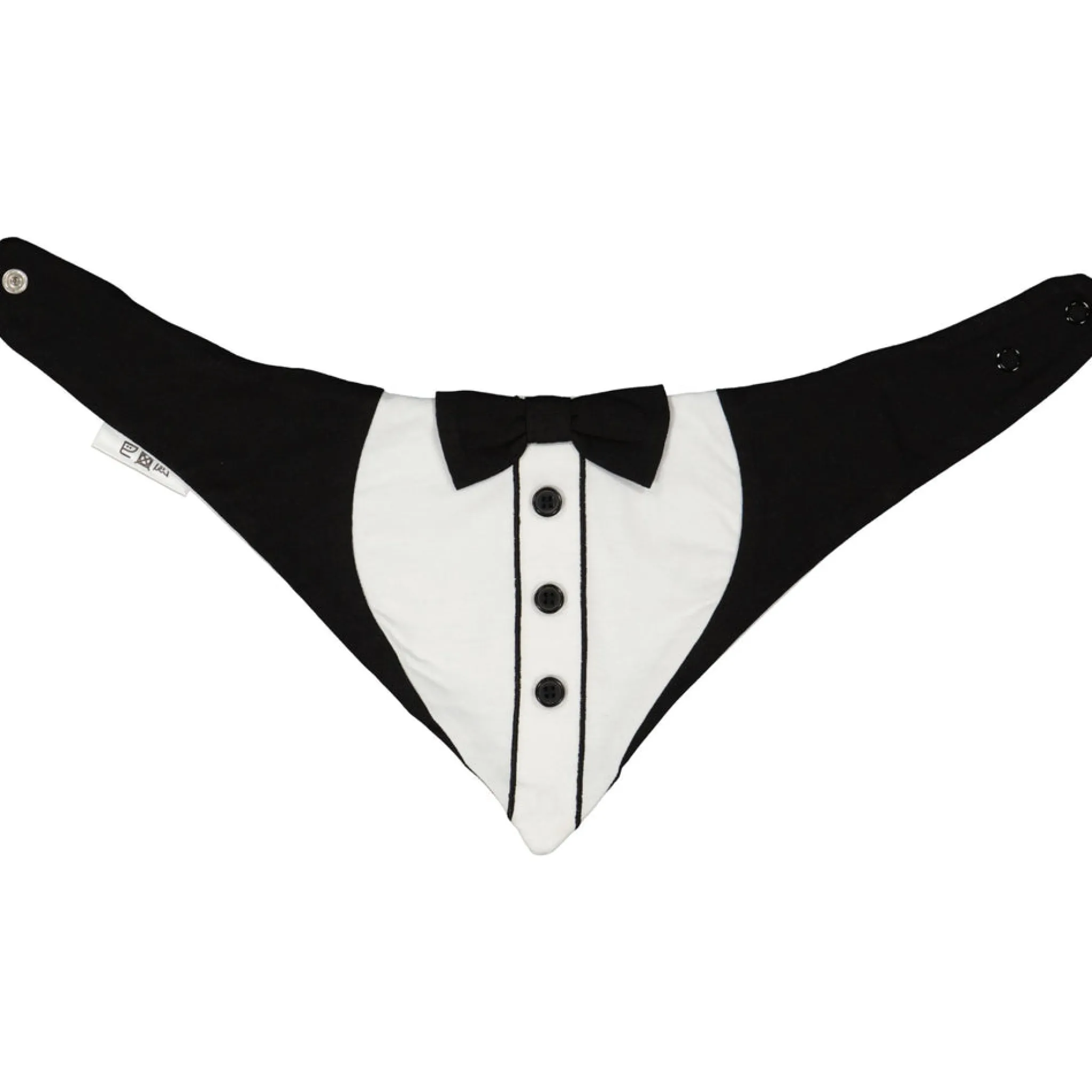 Festligaste biben, med en liten fluga. Passar på alla fina fester och håller bodyn fri från dregel. Ii bomull med Öko-tex certifierad polyester membran.