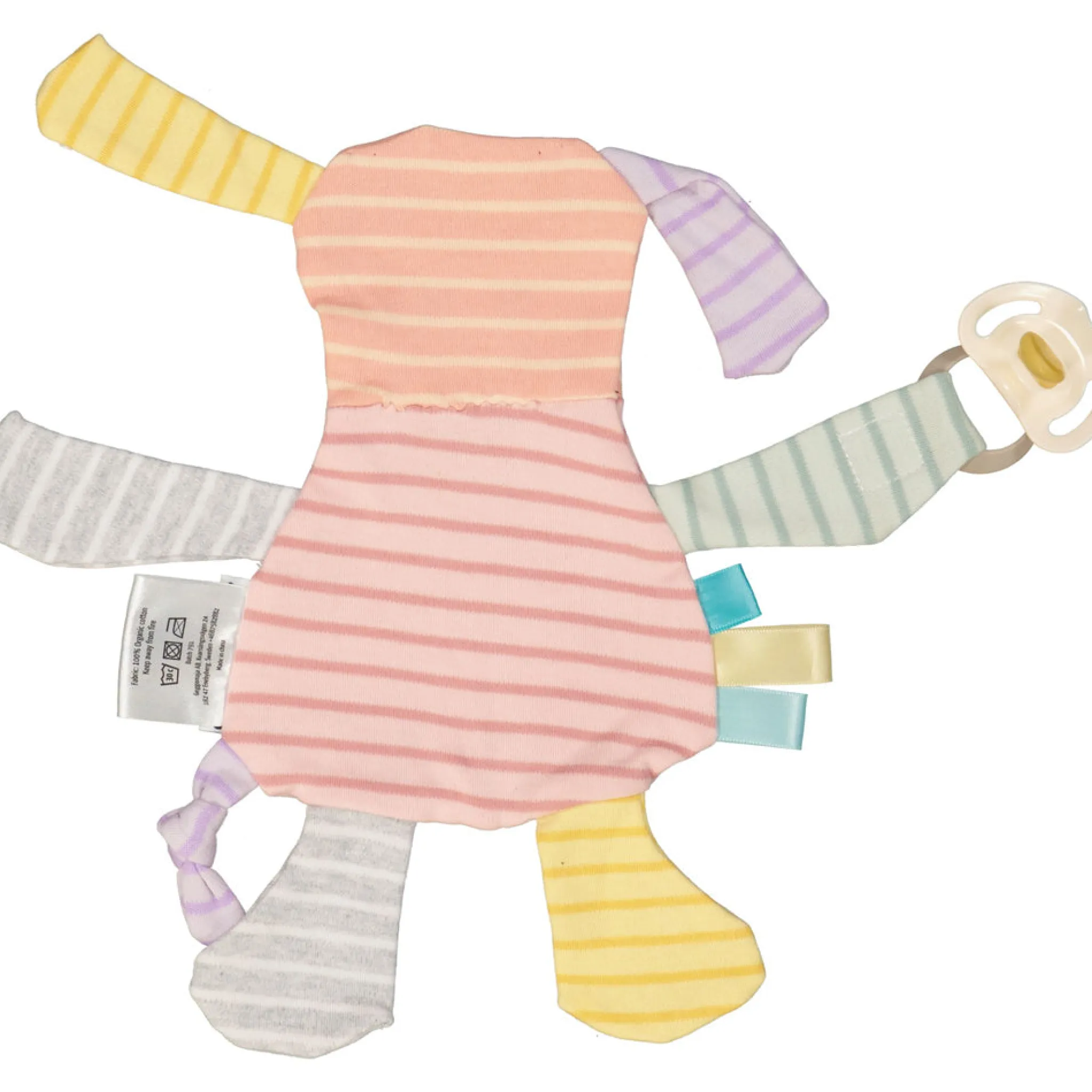 Lek-snutten Doddi play. Lappar att pilla på och ett fäste med kardborre, för nappen. Storlek 30 cm