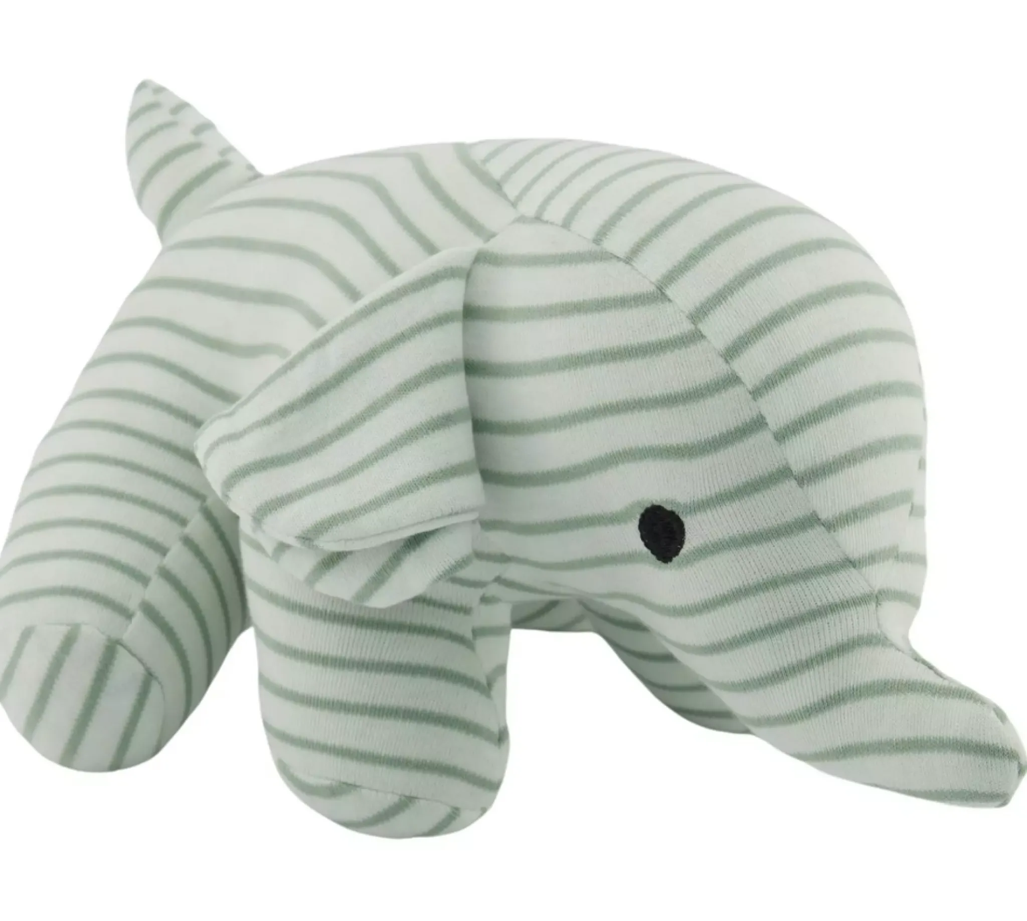 En randig Geggamoja Elefant. Mått 15 cm. CE- märkt och tillverkad enligt European Standard EN71-1;2;3 Tillverkad i 100%Ekologisk bomull.