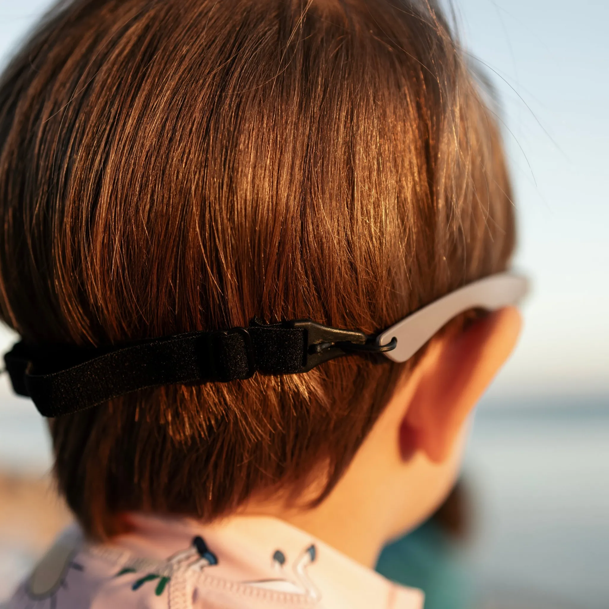 Bågarna är tillverkade i flexibel och BPA-fri plast, vilket gör dem både hållbara och bekväma för barn att bära. Den reglerbara och avtagbara snodden hjälper solglasögonen att sitta säkert på plats även när barnet är aktivt.