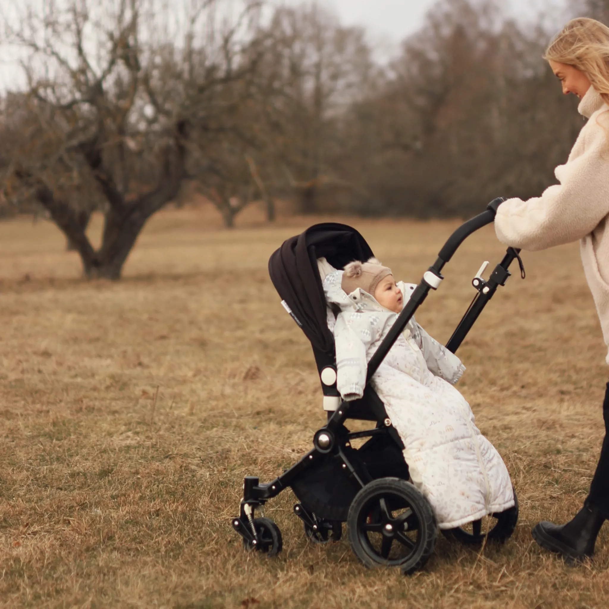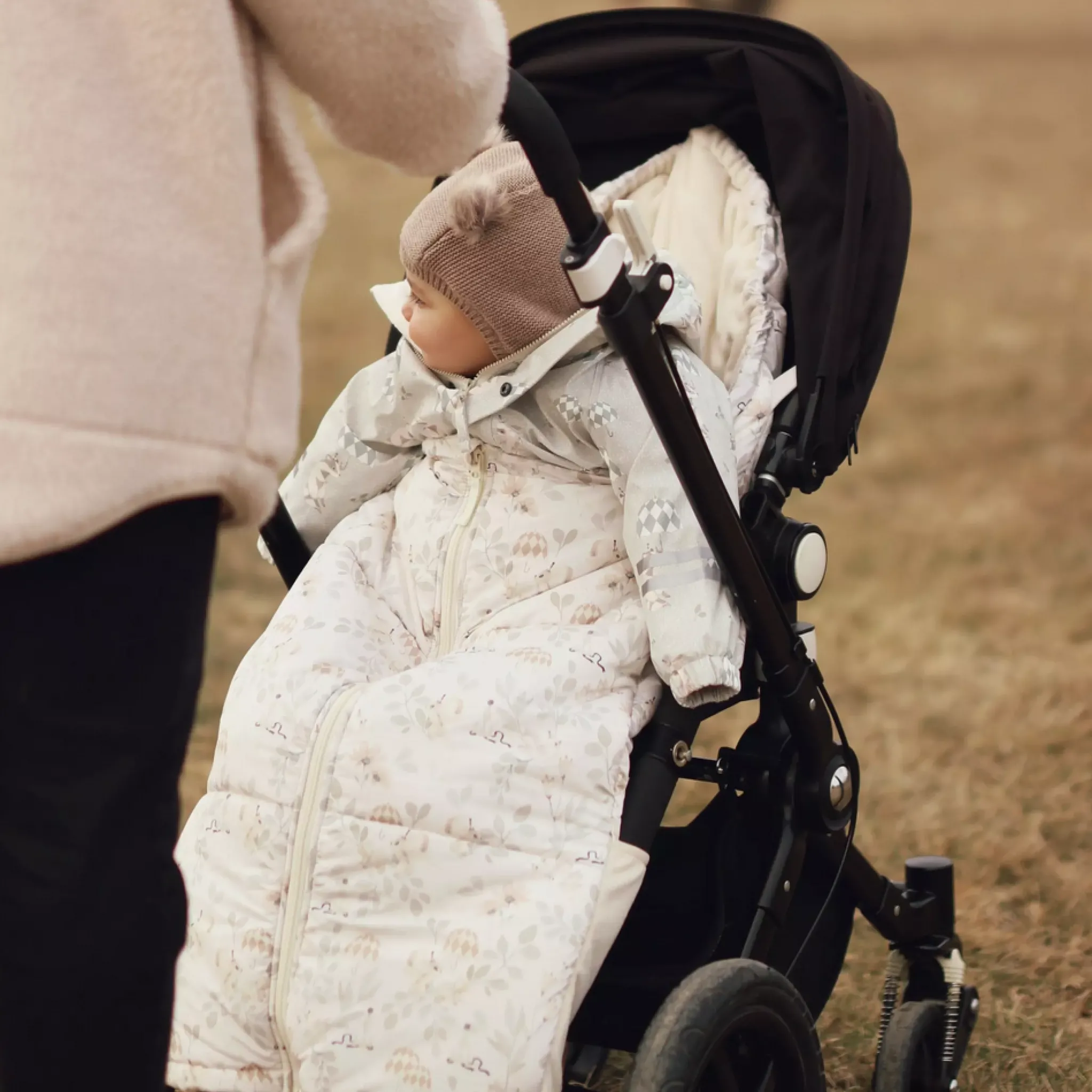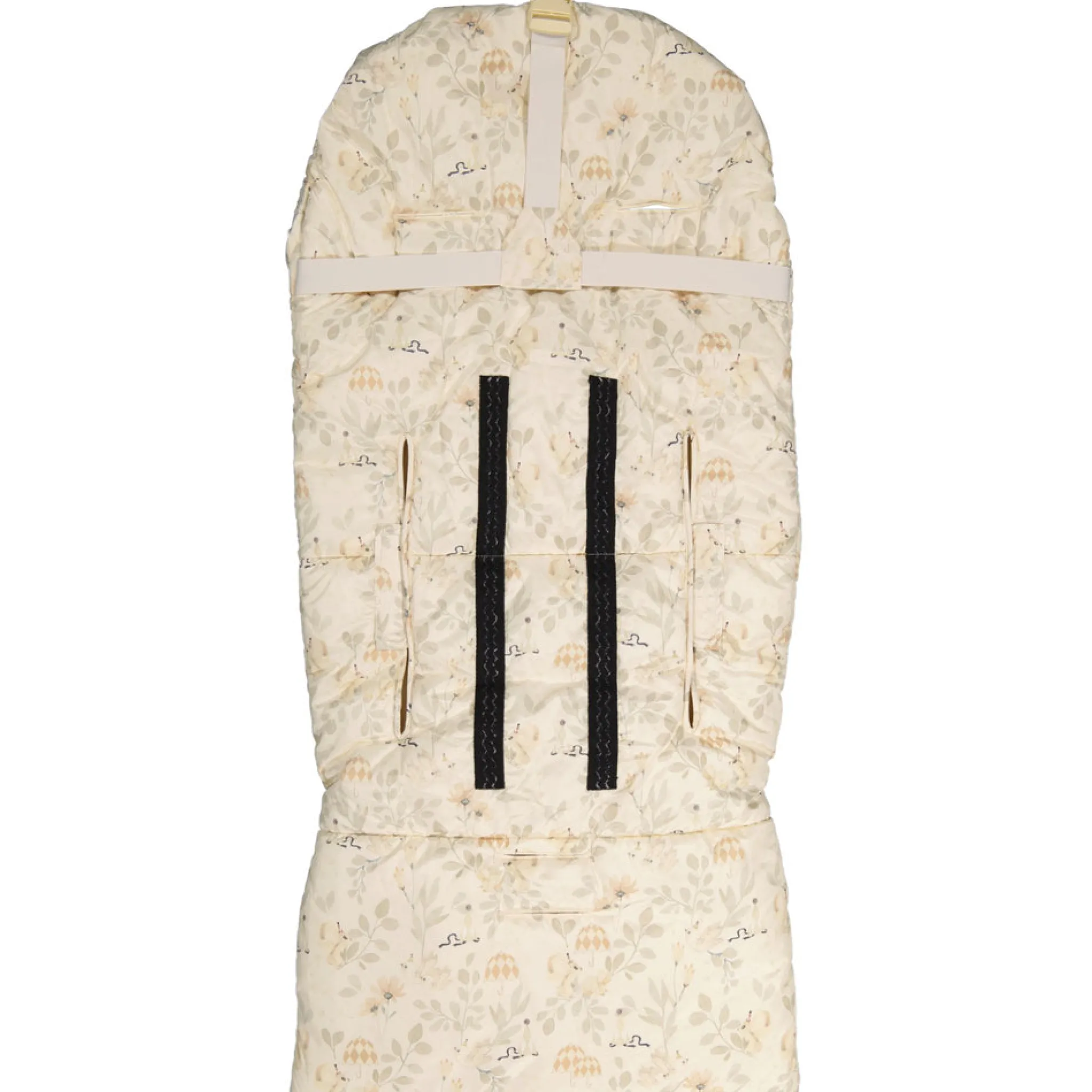 Unik är baksidans band-funktion som hjälper till att reglera åkpåsens placering i barnvagnen.